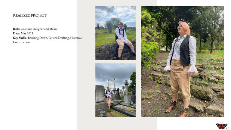 I value sustainable practice, whether that involves repurposing fabric, sourcing second hand, or piecing patterns to reduce waste. This is something I want to help change in the industry and continue to be conscious of in my career.